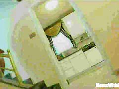 mature MILF bent down and felt a dick in her ass. tight anal